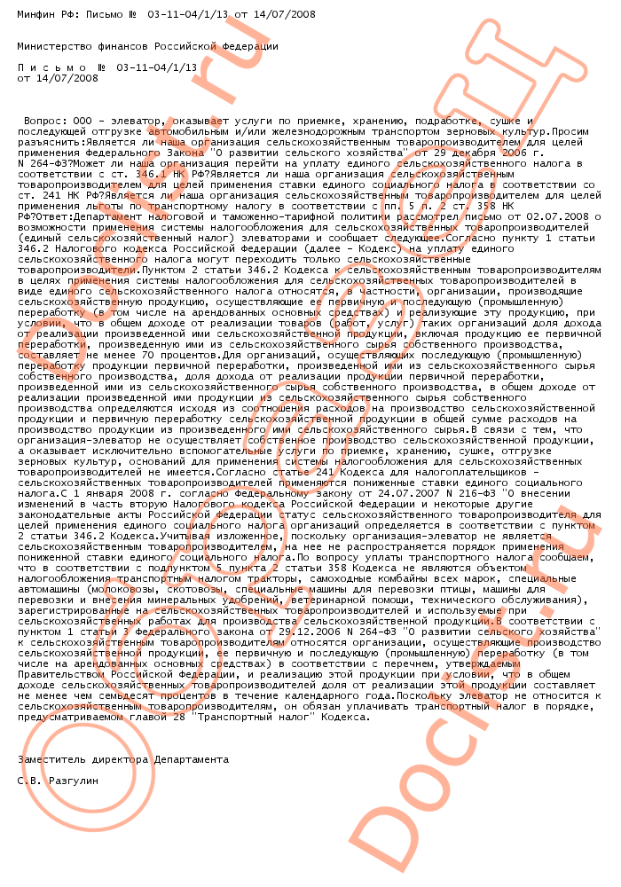 Минфин РФ: Письмо № 03-11-04/1/13 от 14/07/2008 скачать образец документа