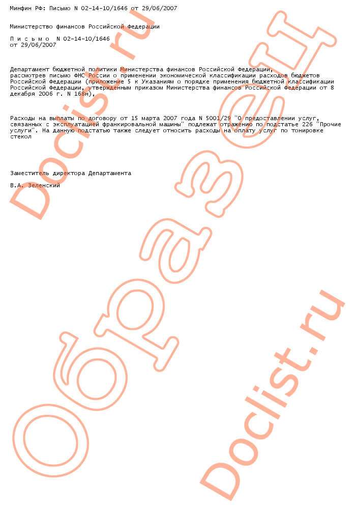 Минфин РФ: Письмо N 02-14-10/1646 от 29/06/2007 скачать образец документа