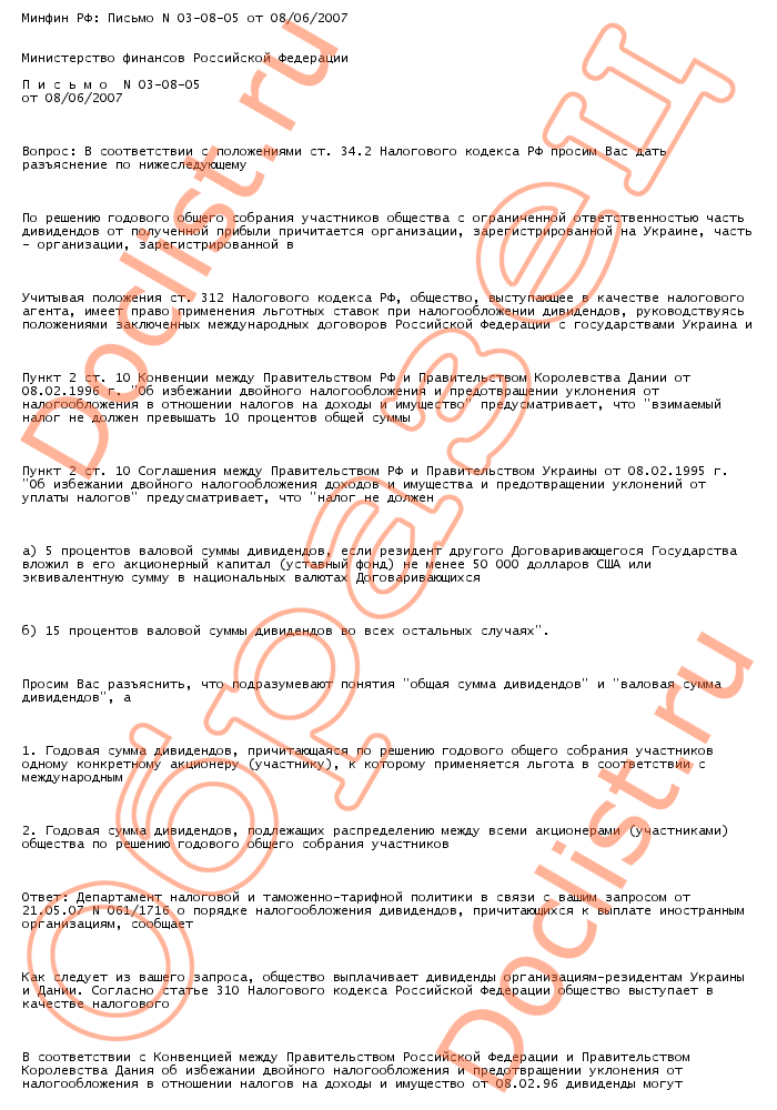 Минфин РФ: Письмо N 03-08-05 от 08/06/2007 скачать образец документа