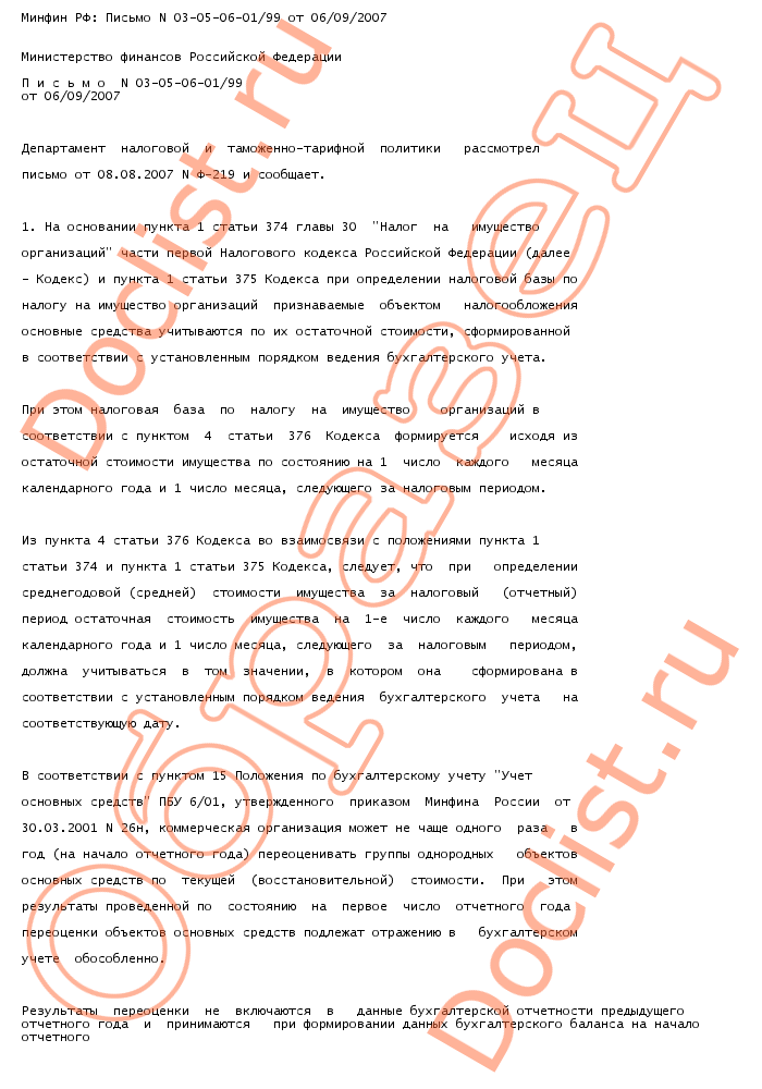 Минфин РФ: Письмо N 03-05-06-01/99 от 06/09/2007 скачать образец документа