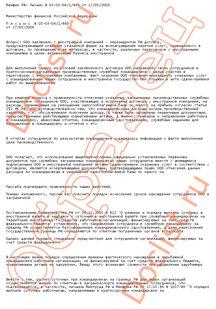 Минфин РФ: Письмо N 03-03-04/1/469 от 17/05/2006 скачать образец документа