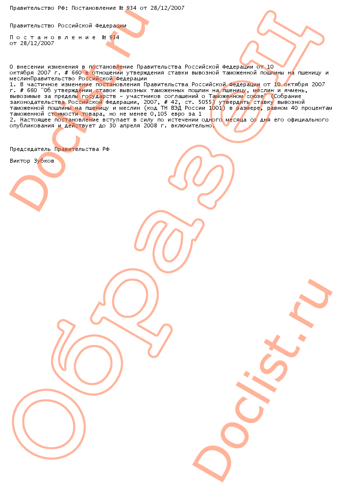 Правительство РФ: Постановление № 934 от 28/12/2007 скачать образец документа