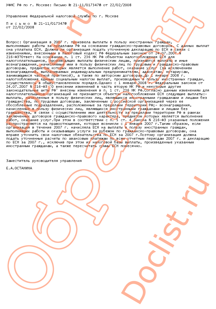 УФНС РФ по г. Москве: Письмо № 21-11/017347@ от 22/02/2008 скачать образец документа