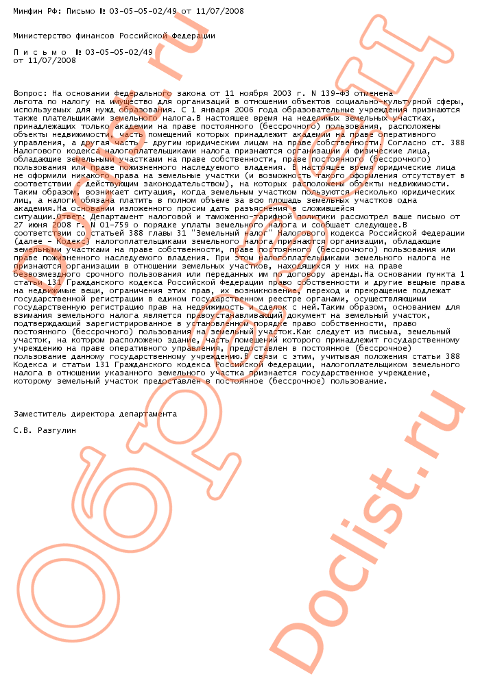 Минфин РФ: Письмо № 03-05-05-02/49 от 11/07/2008 скачать образец документа