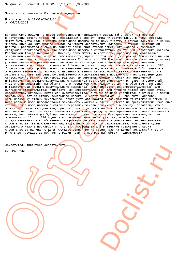 Минфин РФ: Письмо № 03-05-05-02/31 от 06/05/2008 скачать образец документа