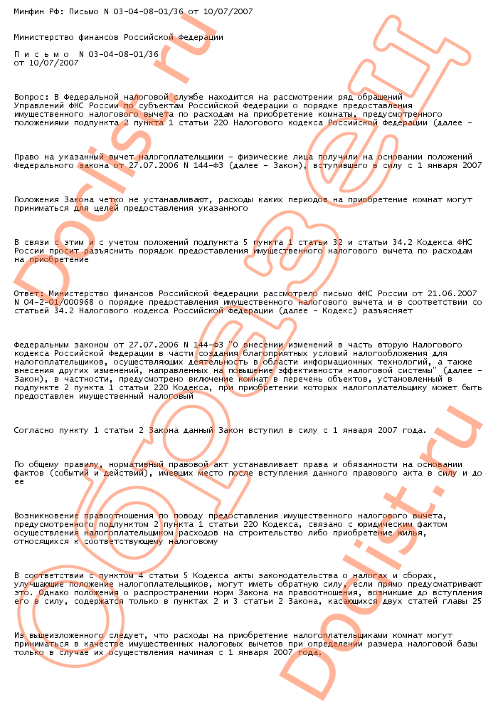 Минфин РФ: Письмо N 03-04-08-01/36 от 10/07/2007 скачать образец документа