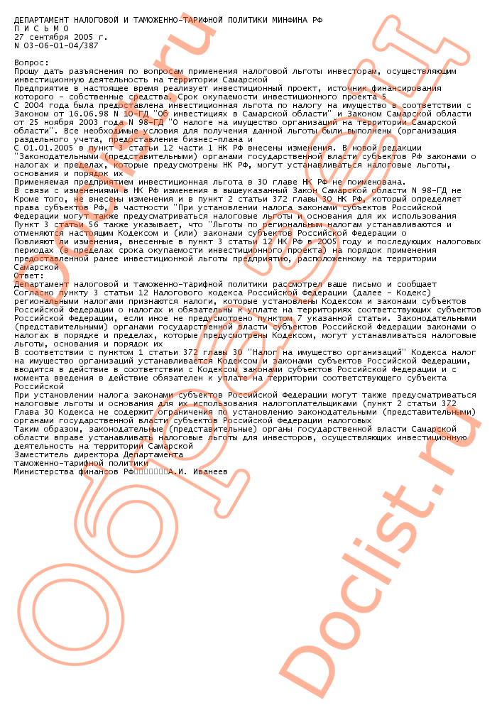 Письмо Минфина РФ от 27.09.2005 г. N 03-06-01-04/387 скачать образец документа