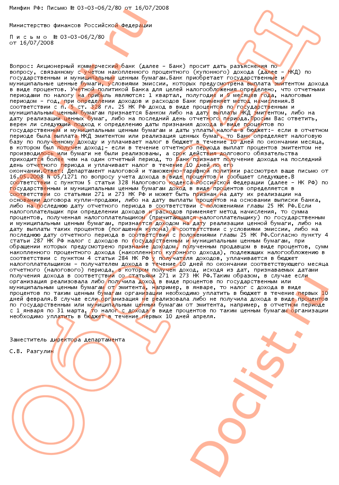 Минфин РФ: Письмо № 03-03-06/2/80 от 16/07/2008 скачать образец документа