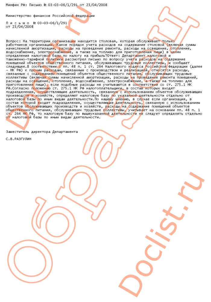 Минфин РФ: Письмо № 03-03-06/1/291 от 23/04/2008 скачать образец документа