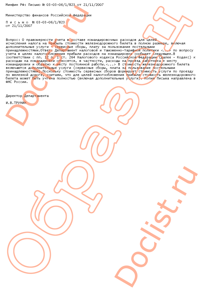 Минфин РФ: Письмо № 03-03-06/1/823 от 21/11/2007 скачать образец документа
