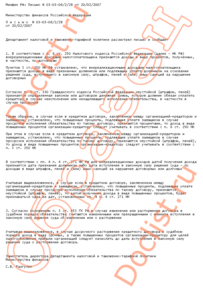 Минфин РФ: Письмо N 03-03-06/2/28 от 20/02/2007 скачать образец документа