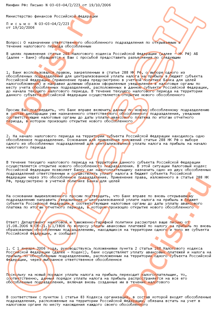 Минфин РФ: Письмо N 03-03-04/2/223 от 19/10/2006 скачать образец документа