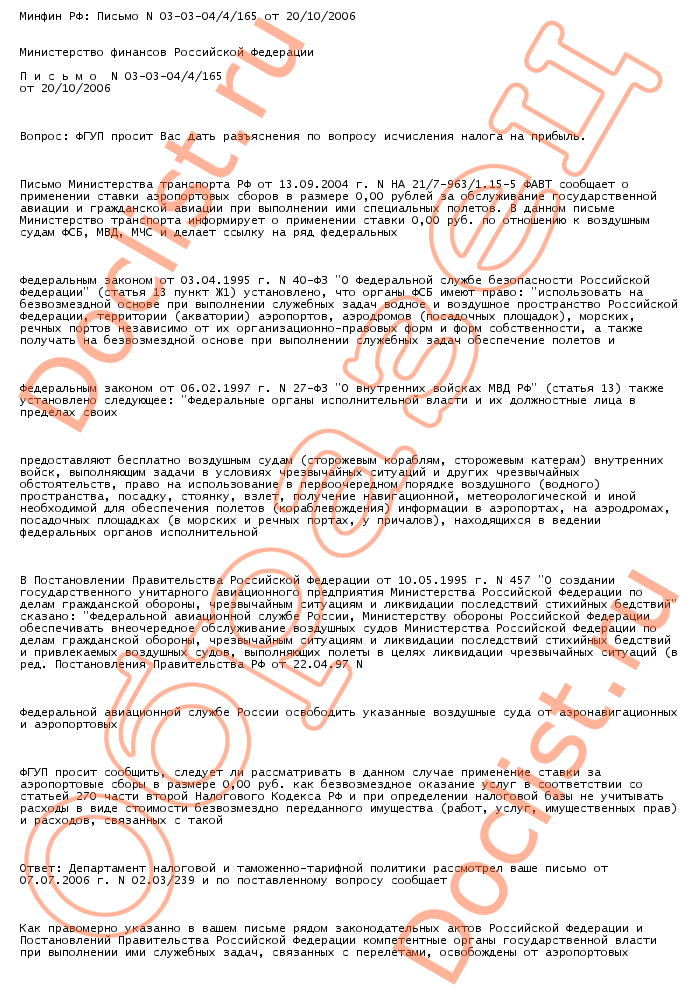 Минфин РФ: Письмо N 03-03-04/4/165 от 20/10/2006 скачать образец документа