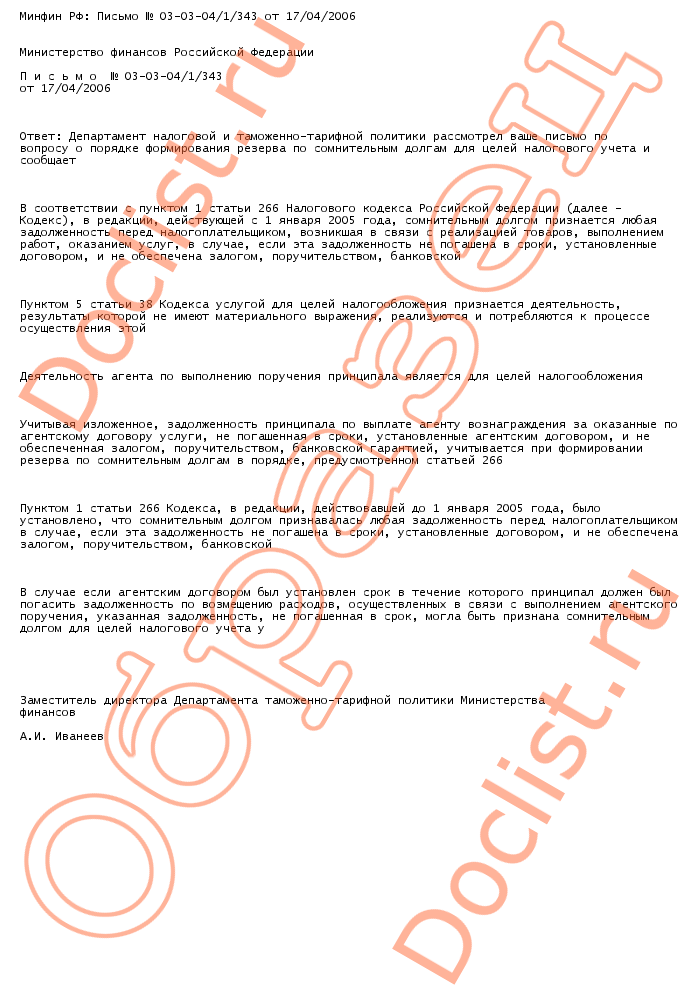 Минфин РФ: Письмо № 03-03-04/1/343 от 17/04/2006 скачать образец документа