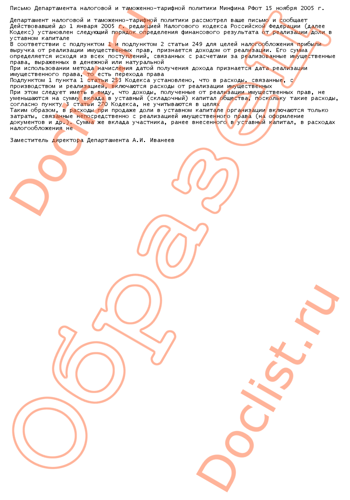 Письмо Минфина РФ от 15.11.2005 г. N 03-03-04/1/358 скачать образец документа