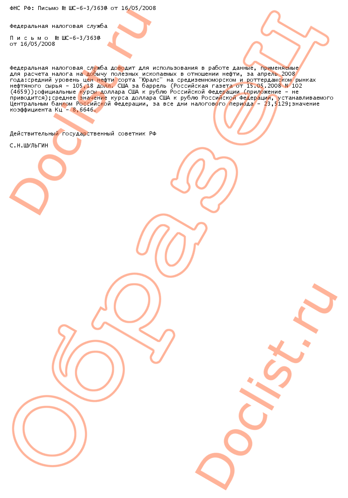 ФНС РФ: Письмо № ШС-6-3/363@ от 16/05/2008 скачать образец документа