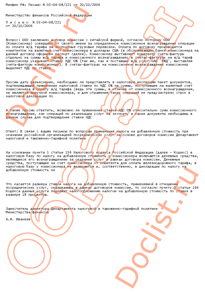 Минфин РФ: Письмо N 03-04-08/221 от 20/10/2006 скачать образец документа