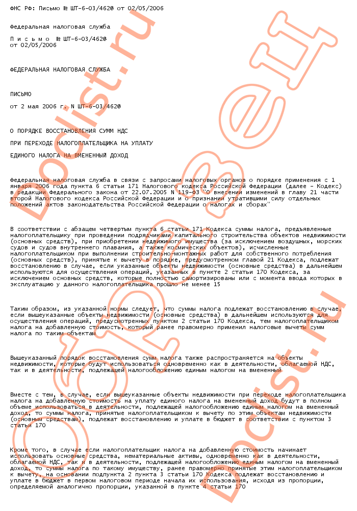 ФНС РФ: Письмо № ШТ-6-03/462@ от 02/05/2006 скачать образец документа