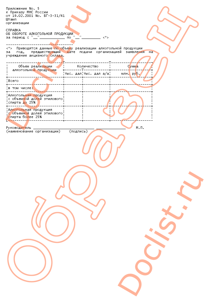 Справка об обороте алкогольной продукции для получения разрешения на учреждение акцизного склада организацией оптовой торговли скачать образец документа