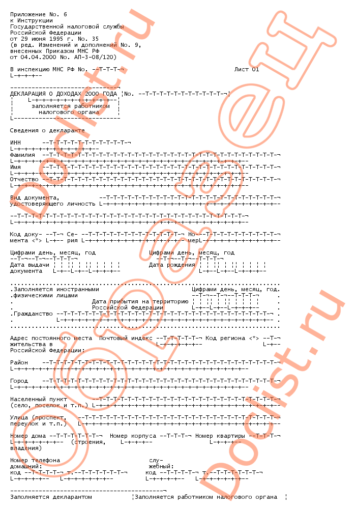 Декларация о доходах, полученных за год. Лист 01 скачать образец документа
