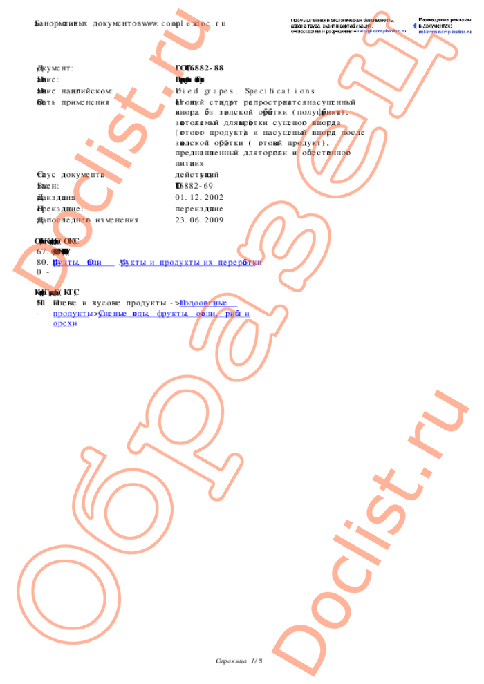 ГОСТ 6882-88 Виноград сушеный. Технические условия скачать