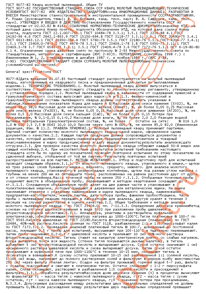 ГОСТ 9077-82 кварц молотый пылевидный. Общие ту скачать
