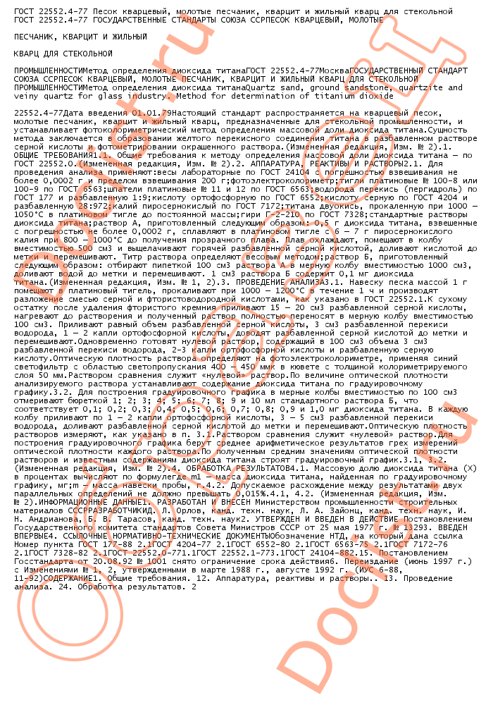 ГОСТ 22552. 4-77 песок кварцевый, молотые песчаник, кварцит и жильный кварц для стекольной промышл. .. скачать