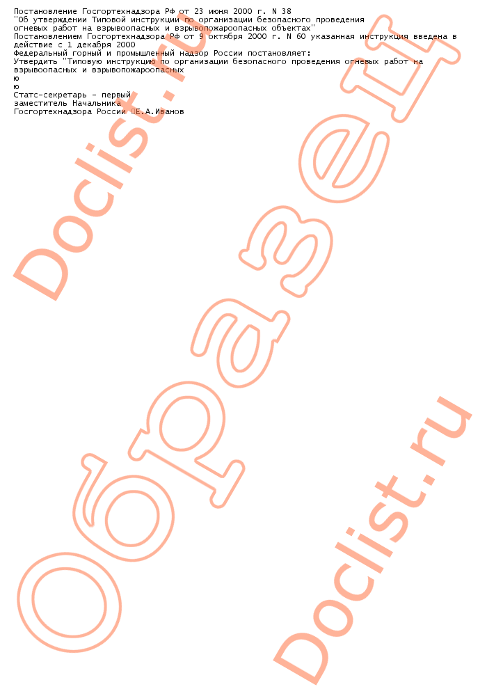Постановление госгортехнадзора РФ от 23 июня 2000 г. n 38 скачать образец документа