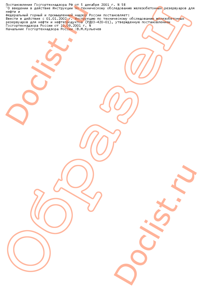 Постановление госгортехнадзора РФ от 5 декабря 2001 г. n 58 скачать образец документа