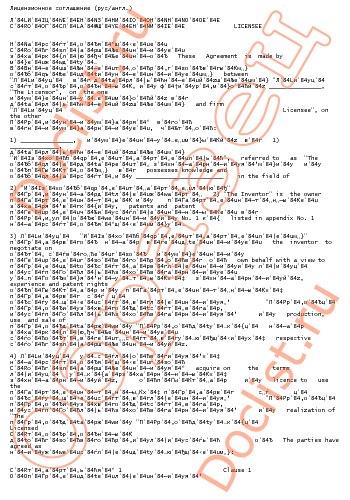 Лицензионное соглашение (рус/англ.) скачать образец документа