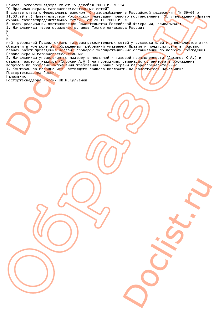 Приказ госгортехнадзора РФ от 15 декабря 2000 г. n 124 скачать образец документа
