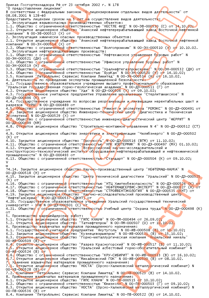 Приказ госгортехнадзора РФ от 23 октября 2002 г. n 178 скачать образец документа