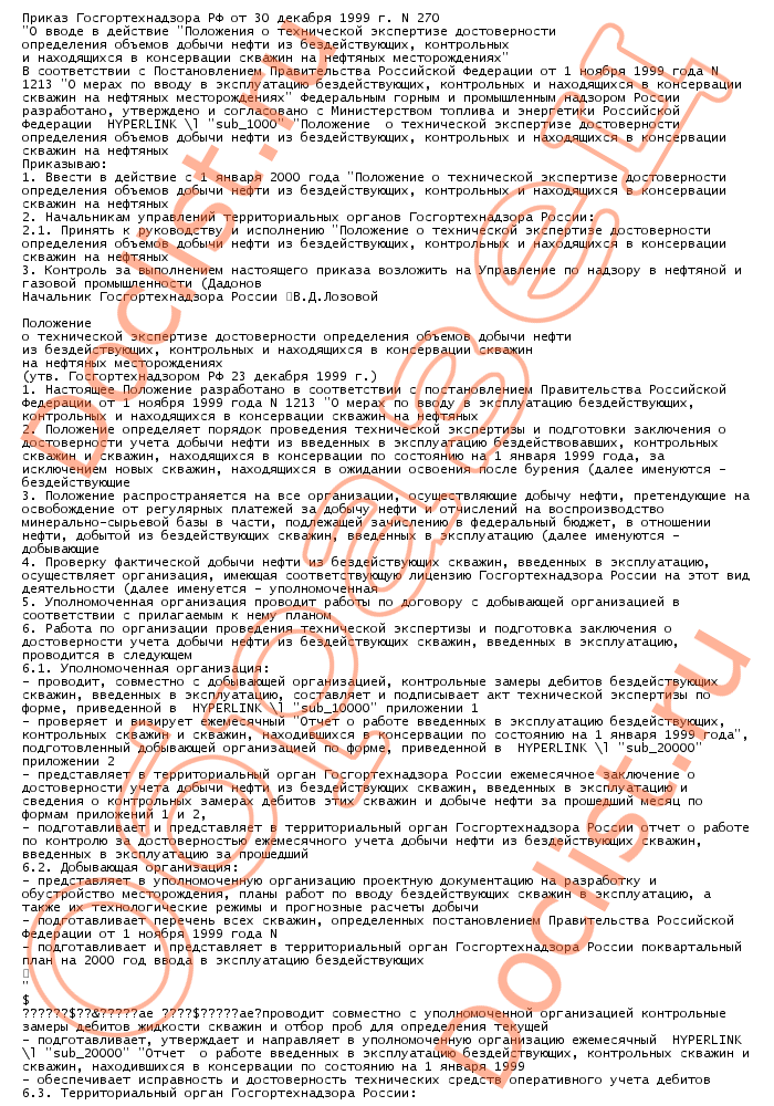 Приказ госгортехнадзора РФ от 30 декабря 1999 г. n 270 скачать образец документа