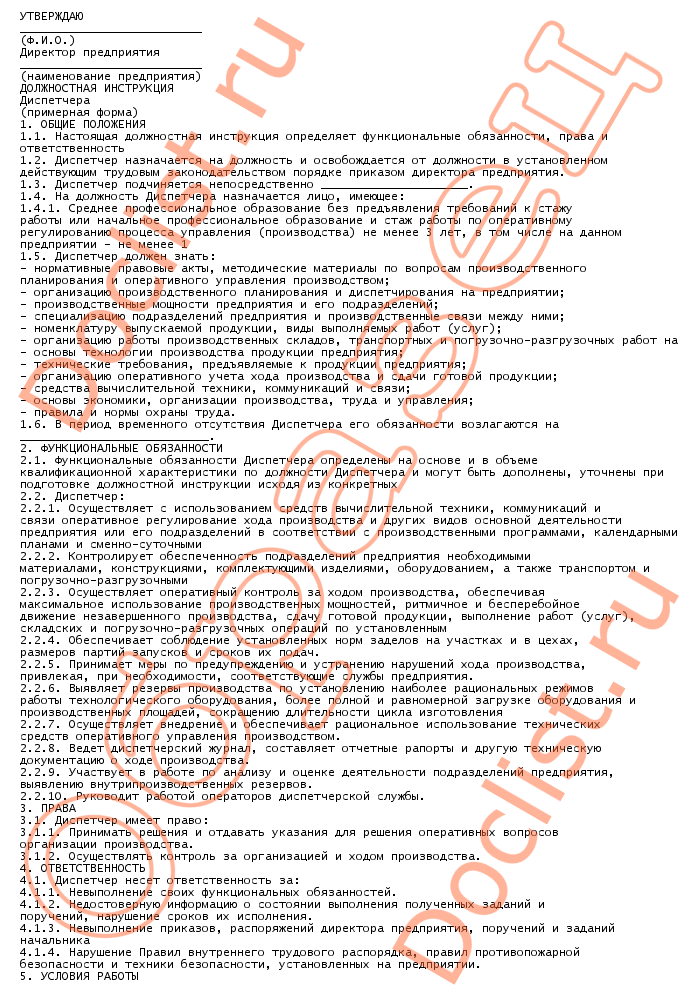Популярные должностные инструкции. Производственно-диспетчерские службы.