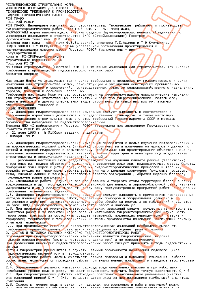 РСН 76-90 нженерные изыскания для строительства. Технические требования к производству гидрометеорологических работ скачать