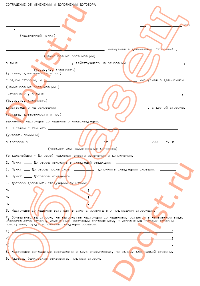 Соглашение об изменении и дополнении договора скачать образец документа