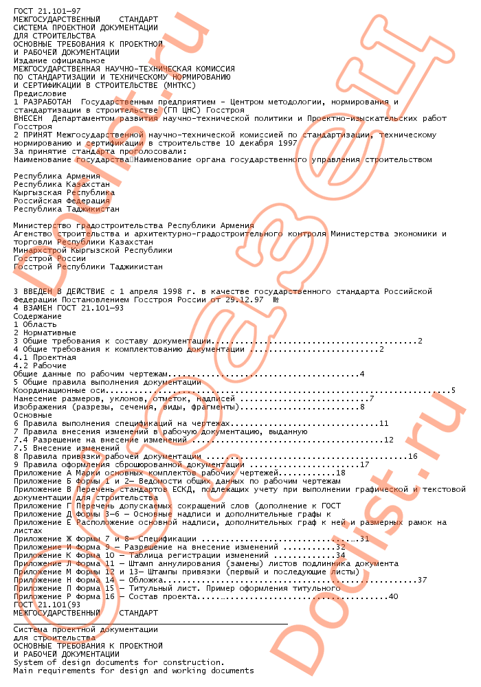 Главная :: Нормативы и стандарты :: Государственные стандарты (ГОСТы) :: Система проектной документации для строительства (СПДС) :: ГОСТ 21. 101-97