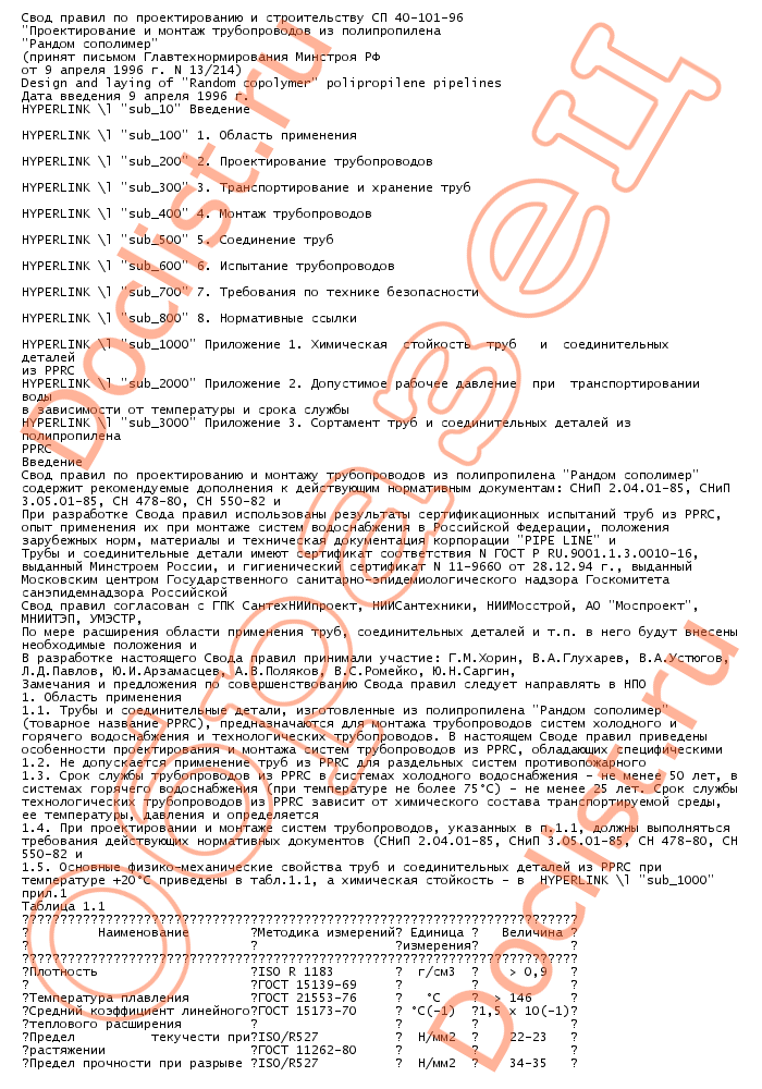 СП 40-101-96 Проектирование и монтаж трубопроводов из полипропилена. Рандом сополимер скачать
