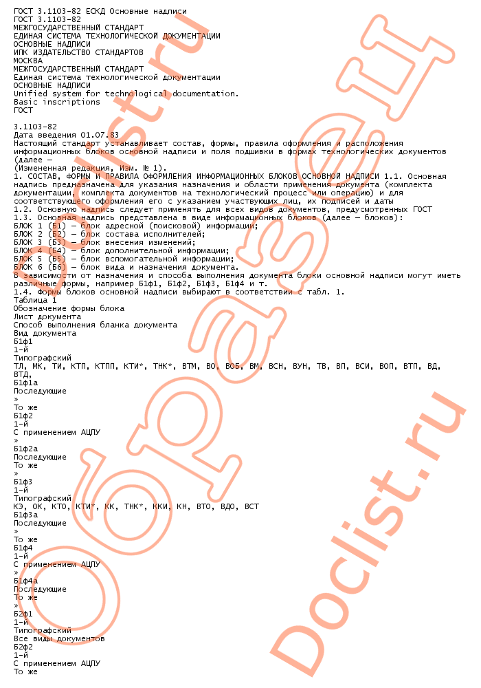ГОСТ 3. 1103-82 ЕСКД основные надписи скачать