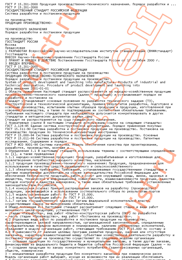 Главная :: Нормативы и стандарты :: Государственные стандарты (ГОСТы) :: Терминология и стандартизация :: ГОСТ Р 15. 201-2000 продукция производственно-технического назначения. Порядок разработки и . ..