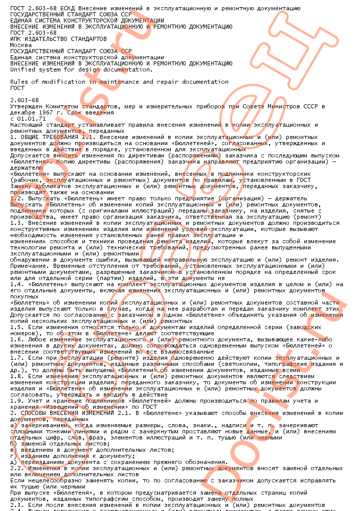 ГОСТ 2. 603-68 ЕСКД внесение изменений в эксплуатационную и ремонтную документацию скачать