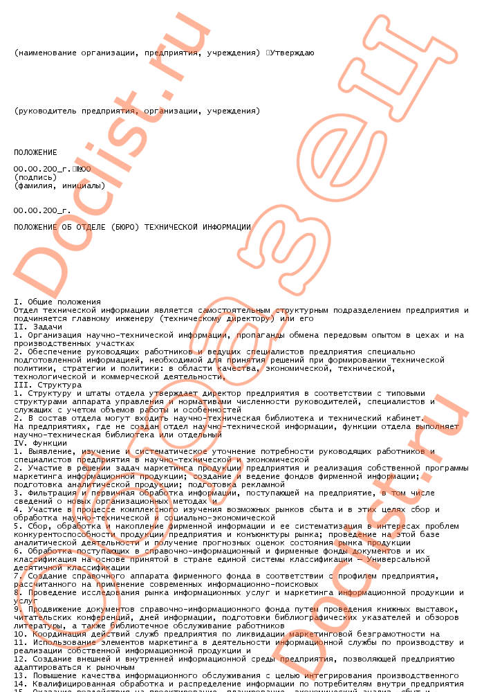 Главная :: Должностные инструкции :: Техническая служба :: Должностная инструкция отдел бюро технической информации