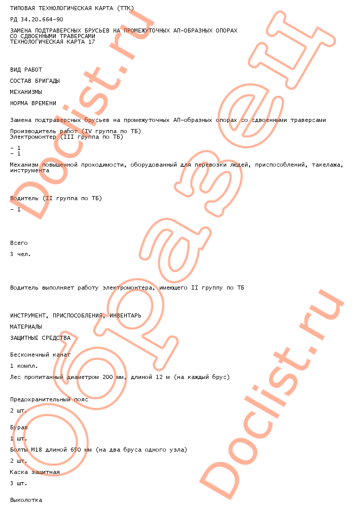Главная :: Нормативы и стандарты :: Технологические карты :: Типовая технологическая карта (ТТК) Замена подтраверсных брусьев на промежуточных АП-образных опорах со сдвоенными траверсами (РД 34.20.664-90 )