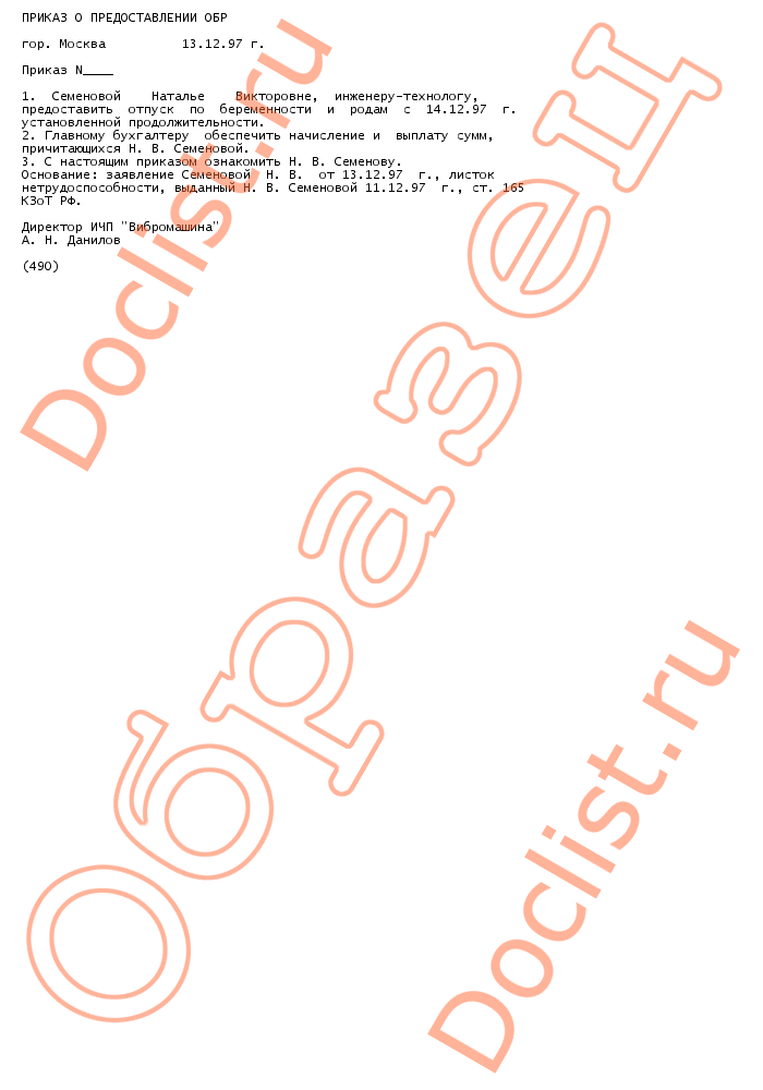 Приказ о предоставлении отпуска по беременности и родам скачать образец документа