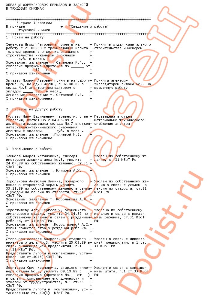 Образцы формулировок приказов и записей в трудовых книжках скачать образец документа