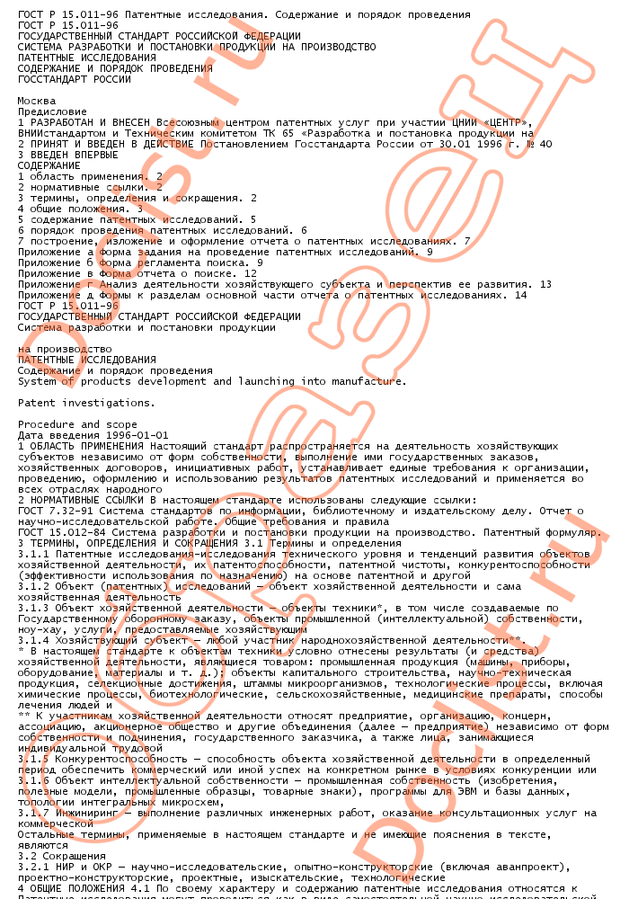 ГОСТ Р 15. 011-96 патентные исследования. Содержание и порядок проведения скачать