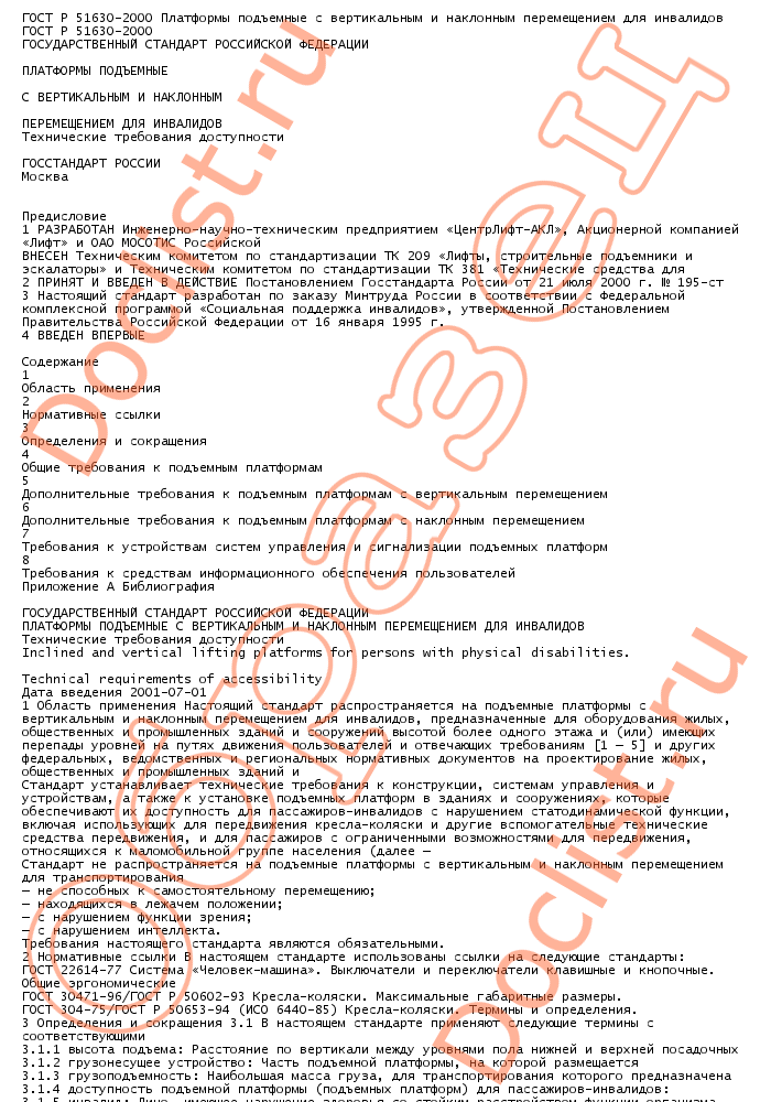 ГОСТ Р 51630-2000 платформы подъемные с вертикальным и наклонным перемещением для инвалидов скачать
