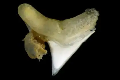 Глубоководные морские черви Osedax, которых еще называют червями-зомби, были впервые обнаружены в 2002 году на морском дне на тушах китов. Раньше считалось, что они питаются лишь скелетами китов и рыб. Однако выяснилось, что при необходимости они могут питаться и акульими зубами. |