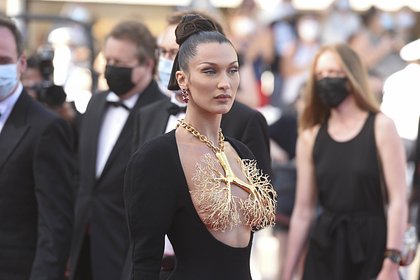 Американская супермодель палестино-голландского происхождения Белла Хадид снялась в откровенном образе без бюстгальтера для итальянской версии журнала Vogue. На размещенном снимке 27-летняя манекенщица запечатлена в облегающем платье телесного цвета, сквозь ткань которого просвечивает ее обнаженная грудь. |
