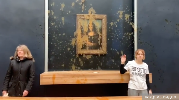 Экоактивисты в Париже облили супом знаменитую картину Леонардо да Винчи «Джоконда» («Мона Лиза») в музее Лувра, которую защищает бронированное стекло, передает AFP. По сообщению агентства, в воскресенье утром два экоактивиста облили супом бронестекло, защищающее «Джоконду» в Лувре, объяснив это желанием продвигать «право на здоровое и устойчивое питание», передает РИА «Новости».Ранее экоактивисты приклеилисьруками к картинам Франсиско Гойи в музее Прадо. |